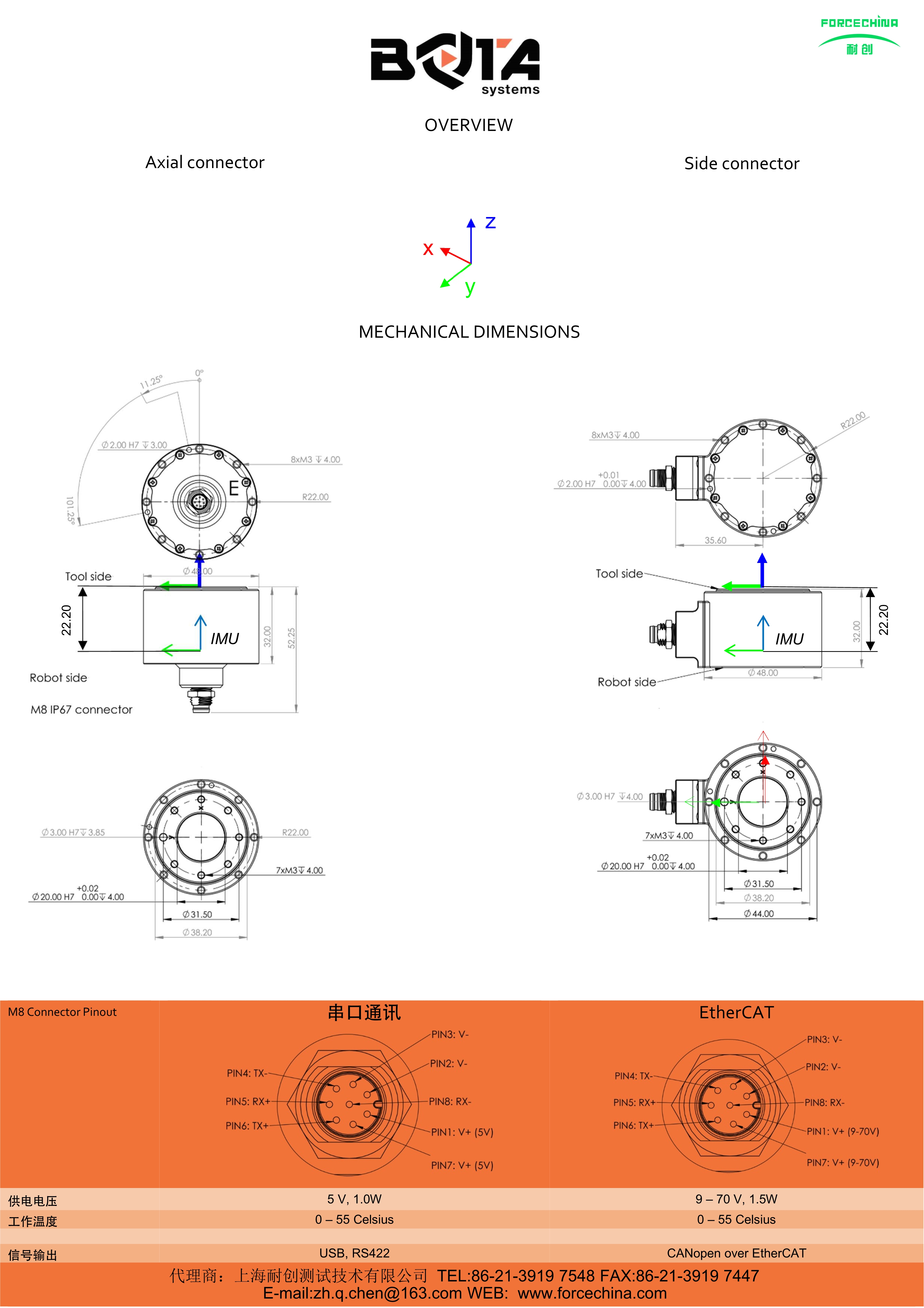 2. CANopen over EtherCAT 1000Hz采样率 ;IMU 6DoF IMU ; 加速度±2g,4g,8g,16g;