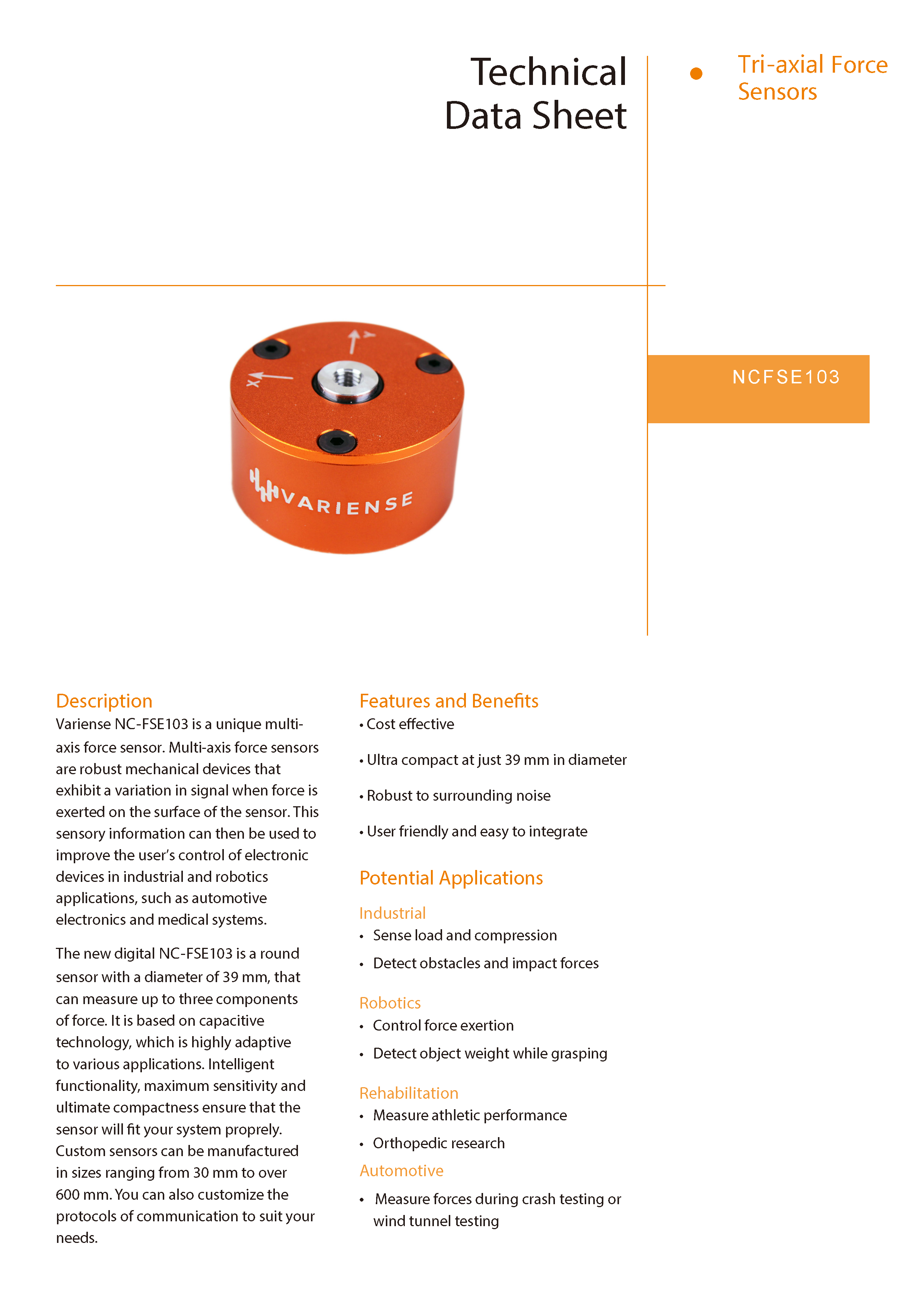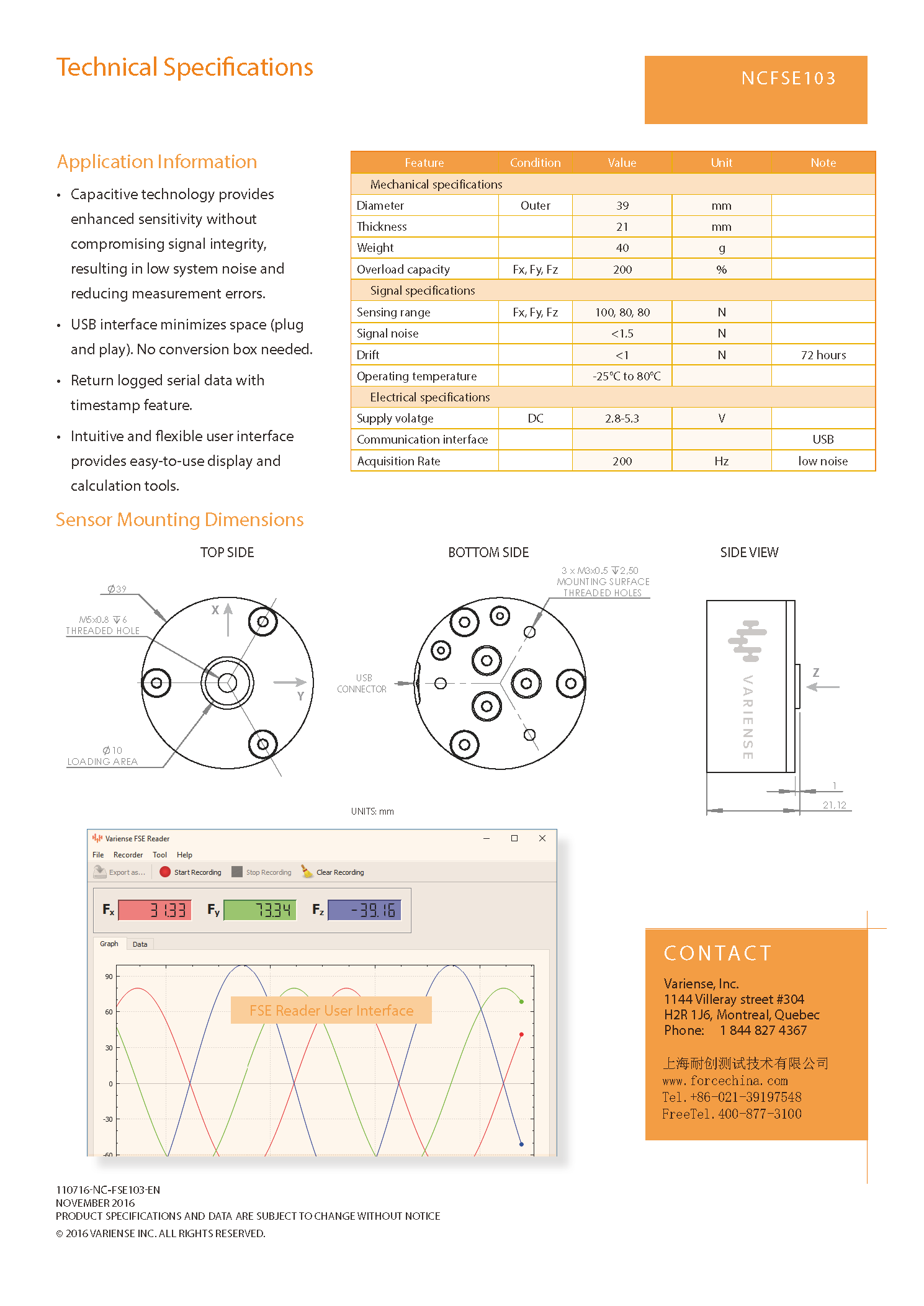 美国VARIENSE FSE103三轴力传感器