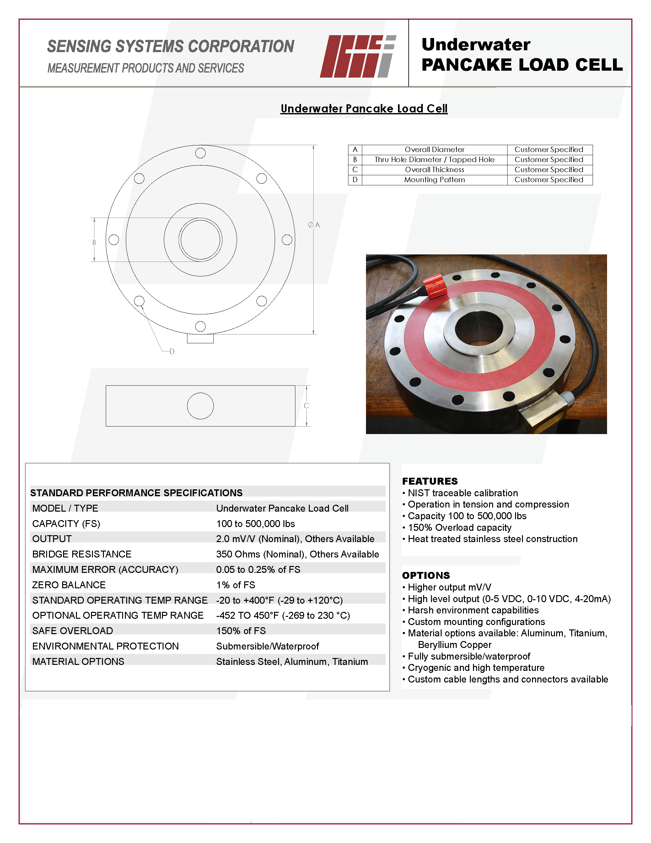 SENSING SYSTEMS 水下扁平式测力传感器