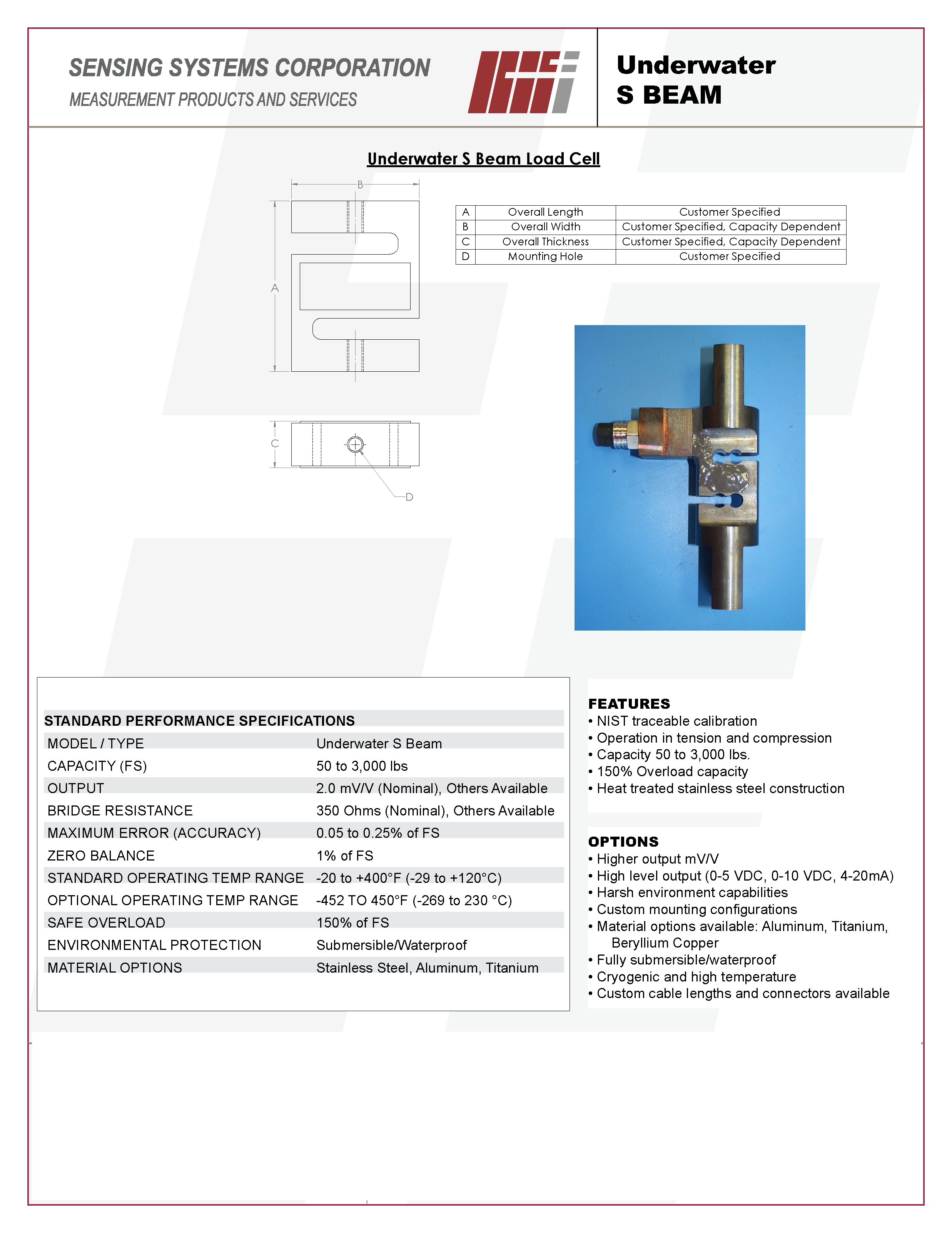 SENSING SYSTEMS 水下S型梁式测力传感器