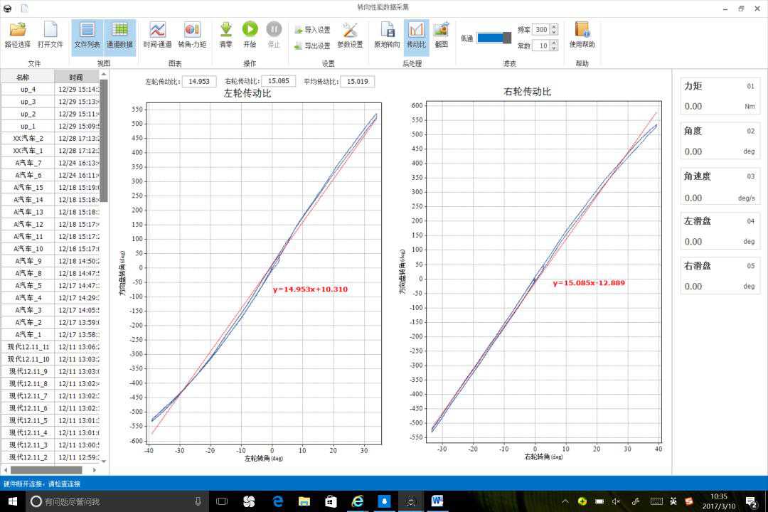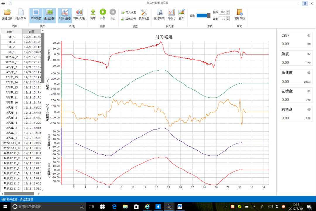 耐创测试的转向性能测试设备:可以适用于乘用车或商用车,测试汽车方向盘动态或静态状态下的力矩和转角,角速度,同时可扩展乘用车或商用车的数字车轮滑盘,同滑盘电子信号集成,大幅度提高了转向传动比试验效率,从而进行力矩波动, 转向刚度、干摩擦、转向行程、最大转向力,转弯半径,车轮最大转向角等各性能测试。该设备既可以通过计算机作为独立的测试系统,用来测试转向系统性能,也可以集成到其他数据采集仪,用来测试整车性能。