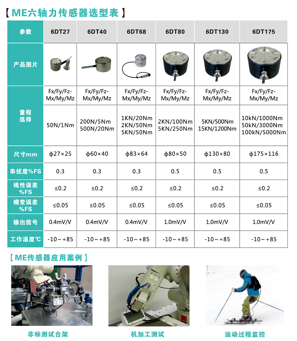 六维力与力矩传感器选型总表
