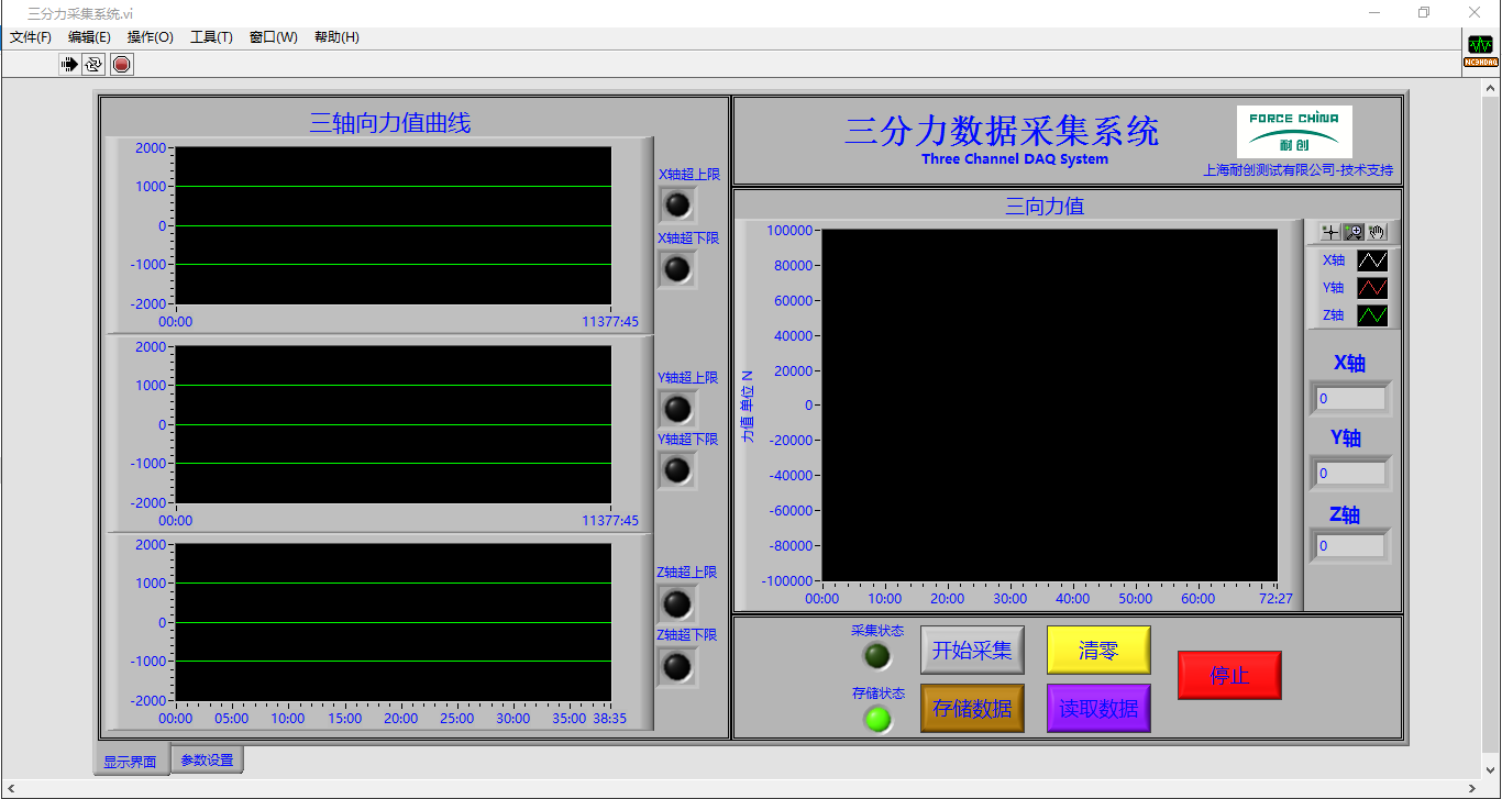 数据存储为TDMS格式文件,兼容Excel,并且在软件运行界面支持数据查看;可以调出曲线以及数据表格;