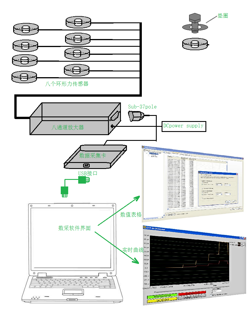 测量螺栓拧紧力,可选用我司环形测力传感器FC-LW**-量程**。传感器的输出经放大器放大,输出标准的0-10V(0-5V)或4-20mA模拟信号。