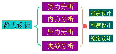 | 其中的静力设计是很重要的,包括受力分析、内力分析、应力分析和失效分析。最后有强度设计、刚度设计和稳定设计。所以可以看出,静力设计在工程设计中有很重要的地位。 |