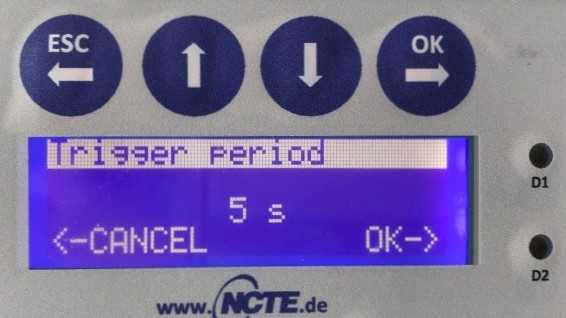 按OK键进入Trigger period里面,按上下键设置时间为5~10s(可根据测试间隔设定)按OK确认