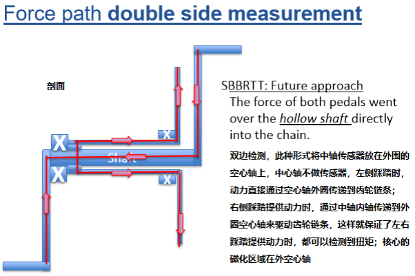 中轴扭矩传感器主要用于自行车底部中轴的扭矩和角度测量;应用于 e-bike自行车扭矩控制检测单元,由该传感器来监测骑行过程中踩踏动作对底部中轴施加的扭矩,以及中轴的转速,此信号反馈给动力控制系统,由后端控制器进行信号处理,从而根据相应运动模式算法进行助力输出;