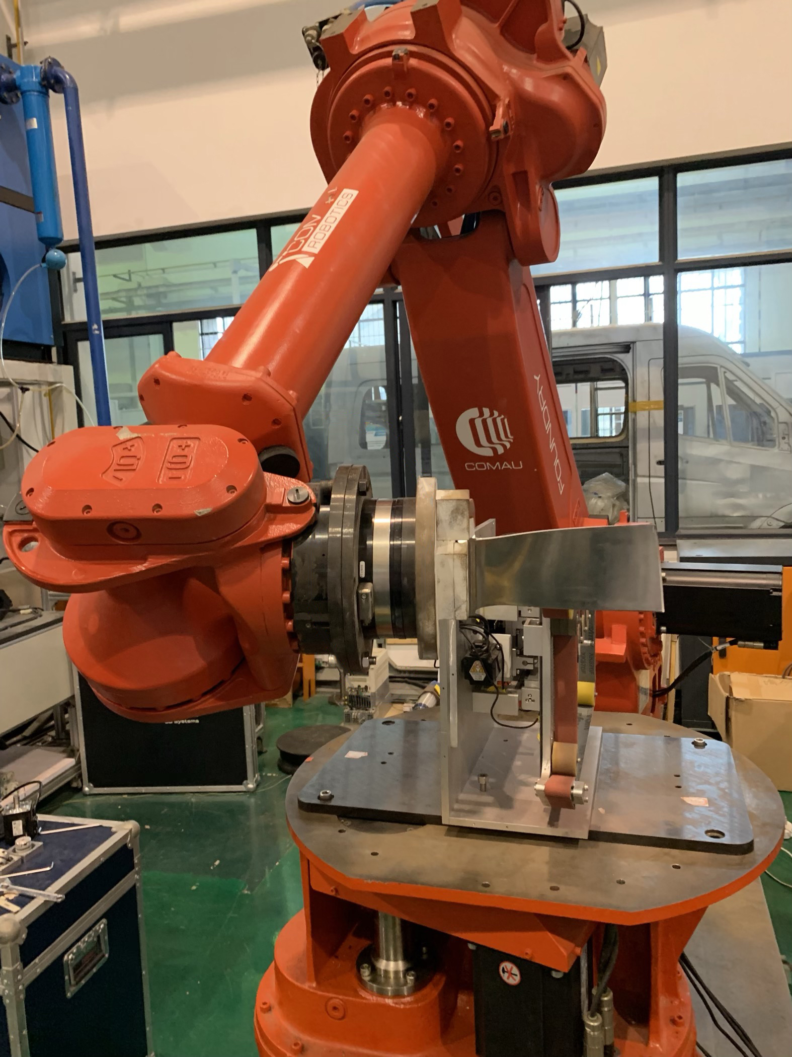 将两者配合使用,可以实现打磨、抛光自动化的功能,利用工业机器人进行加工,利用多维力矩传感器将加工时工业机器人末端执行器接触工件时的力矩大小反馈回来,实现一个力控功能。控制工业机器人在加工时应使用多大的力。