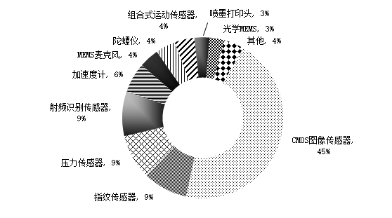 图3 2015年全球各地区智能传感器市场占比 资料来源:Global Market Insights. 3. 智能传感器的重要性在智能物联网时代更加凸显在当前智能时代的推动下,智能传感器的重要性更加凸显,不仅在《中国制造2025》、《德国2020高技术战略》及欧盟、美国、韩国、新加坡等推进的智慧城市等战略方面发挥着重要的支撑作用,而且也在物联网、虚拟现实(VR)、机器人、智能家居、自动驾驶汽车等产业发展中发挥着关键作用。高性能、高可靠性的多功能复杂自动、测控系统以及基于射频识别技术的物联网的兴起与发展,愈发凸显了具有感知、认知能力的智能传感器的重要性及其大力、快速发展的迫切性。 二、重点领域智能传感器的产品类型多样,按照不同的分类标准就有不同的分类类别。例如按智能化的实现方式可分为:非集成式智能传感器、集成化智能传感器和混合式智能传感器;按技术不同可分为:基于MEMS的传感器、基于CMOS的图像传感器和其他(光谱学、ASIC等)的传感器。 1. MEMS传感器MEMS(Micro—Electro Mechanical System,微机电系统)传感器是采用微电子和微机械加工技术制造出来的新型传感器,与传统的传感器相比,MEMS传感器[1]具有体积小、重量轻、成本低、功耗低、可靠性高,适于批量化生产、易于集成和实现智能化等特点。物联网时代下的传感器对物理尺寸十分敏感,传感器的微型化对物联网产业的发展至关重要。MEMS传感器正逐步取代传统机械传感器的主导地位,在消费电子、汽车工业、航空航天、机械、化工及医药等领域展开广泛应用。